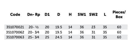 | code | Dn-R | D1 | D | H | SW1 | SW2 | L | pieces\box |